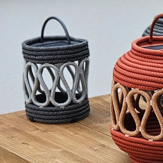 Cord Cylinder Solar LED Lamp - Terracota