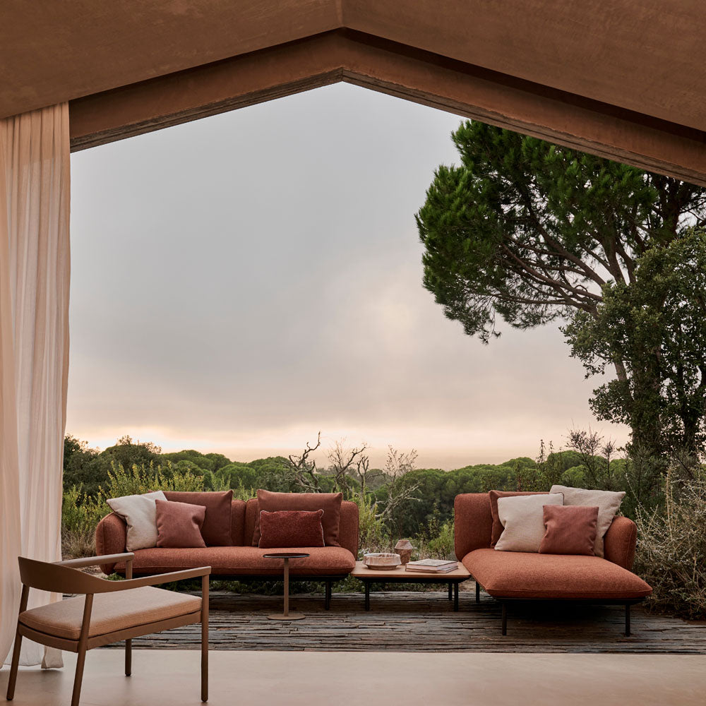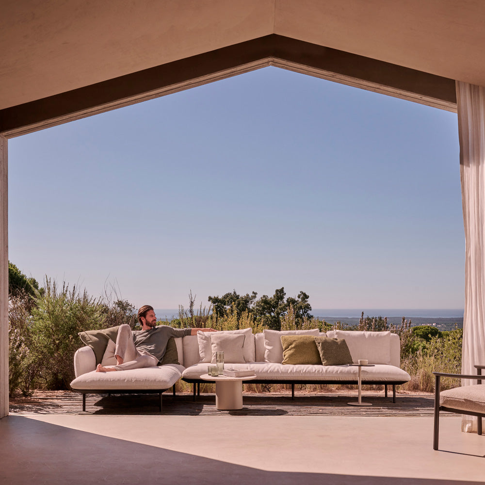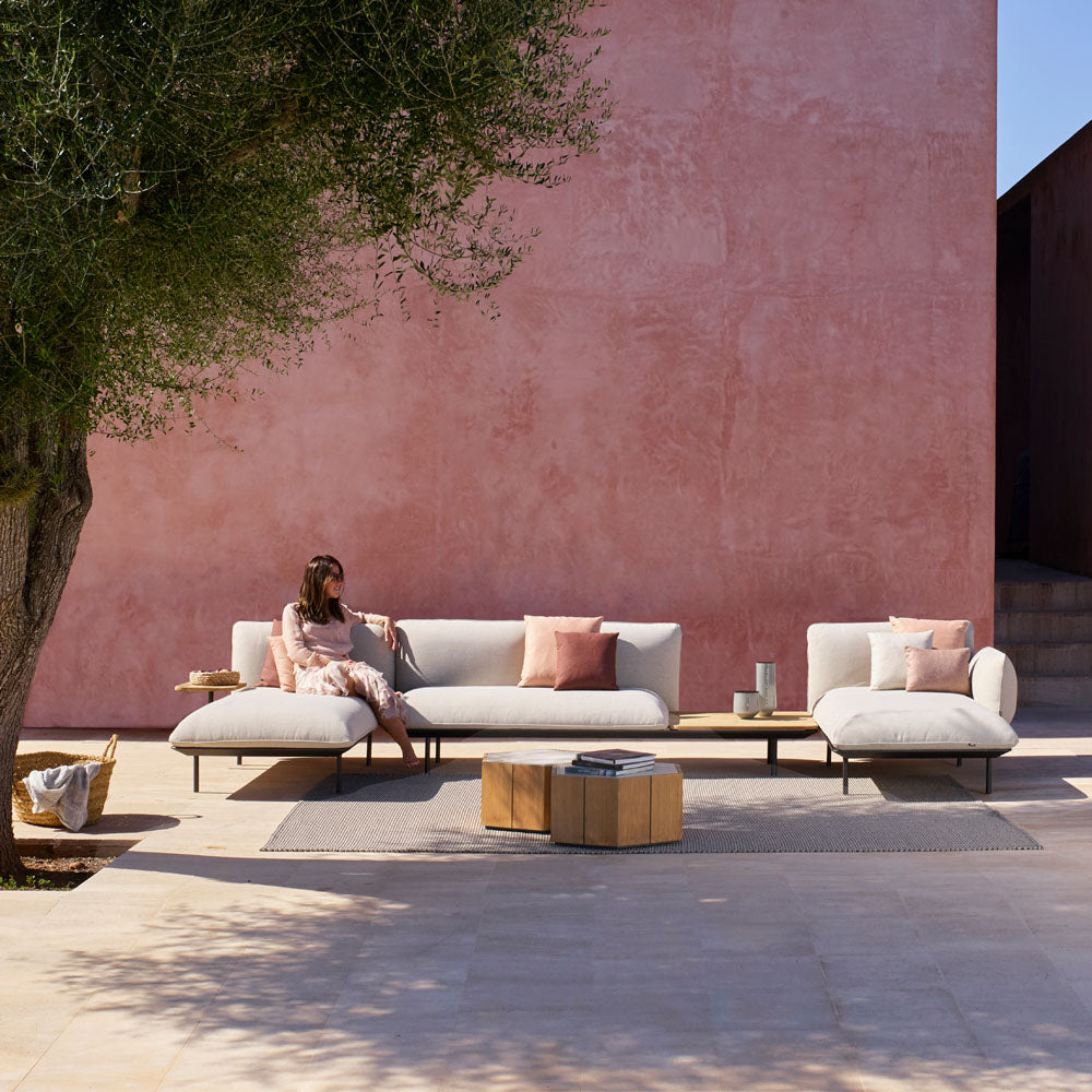 The Senja collection comprises a deeply comfortable modular sofa, an armchair and indulgent lounger. A choice of seating modules, table or console table inserts allow you to personalise the sofa. The elegant armchair's light design has a gently supporting Canax® back rest. The lounger's voluminous cushions are made for relaxation, and it comes with an optional full-length side table. The Senja collection is available with powder-coated aluminium legs in linen, wengé or solid plantation teak.