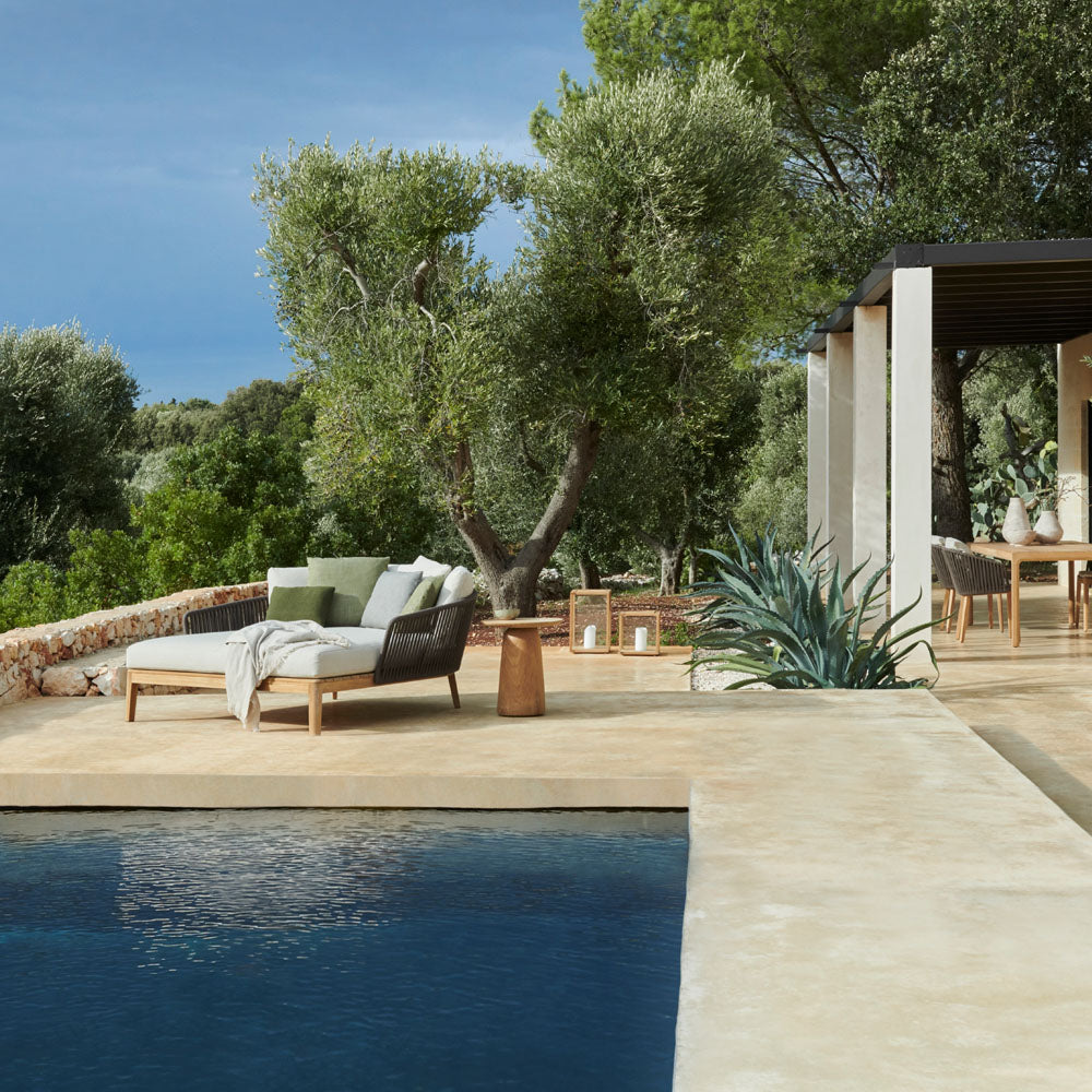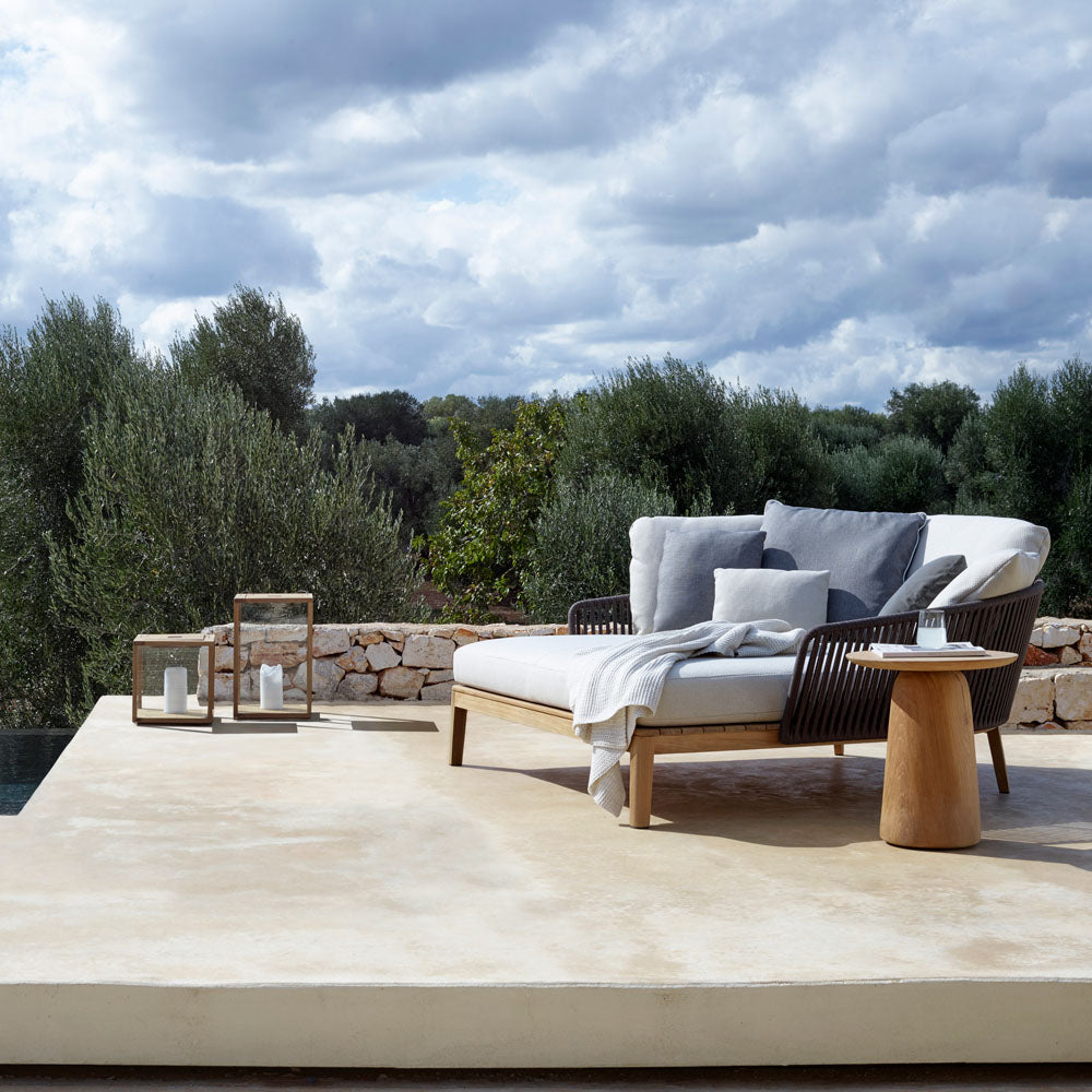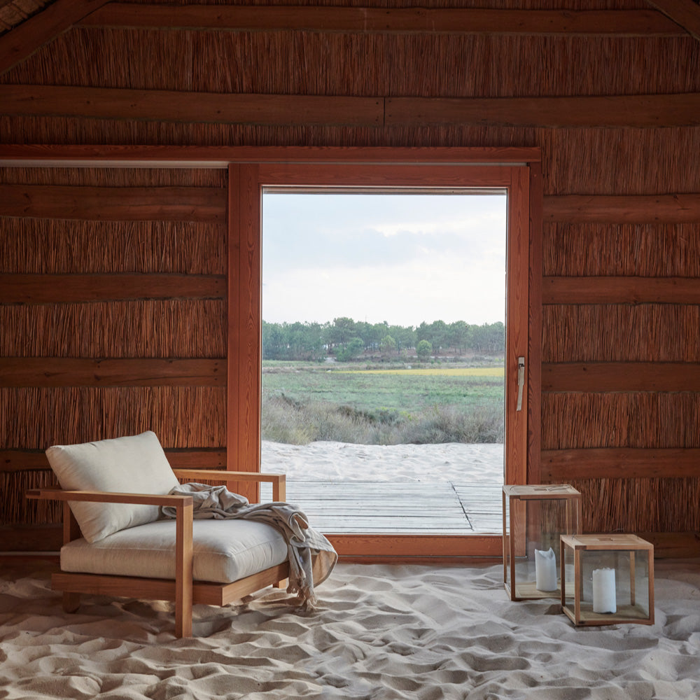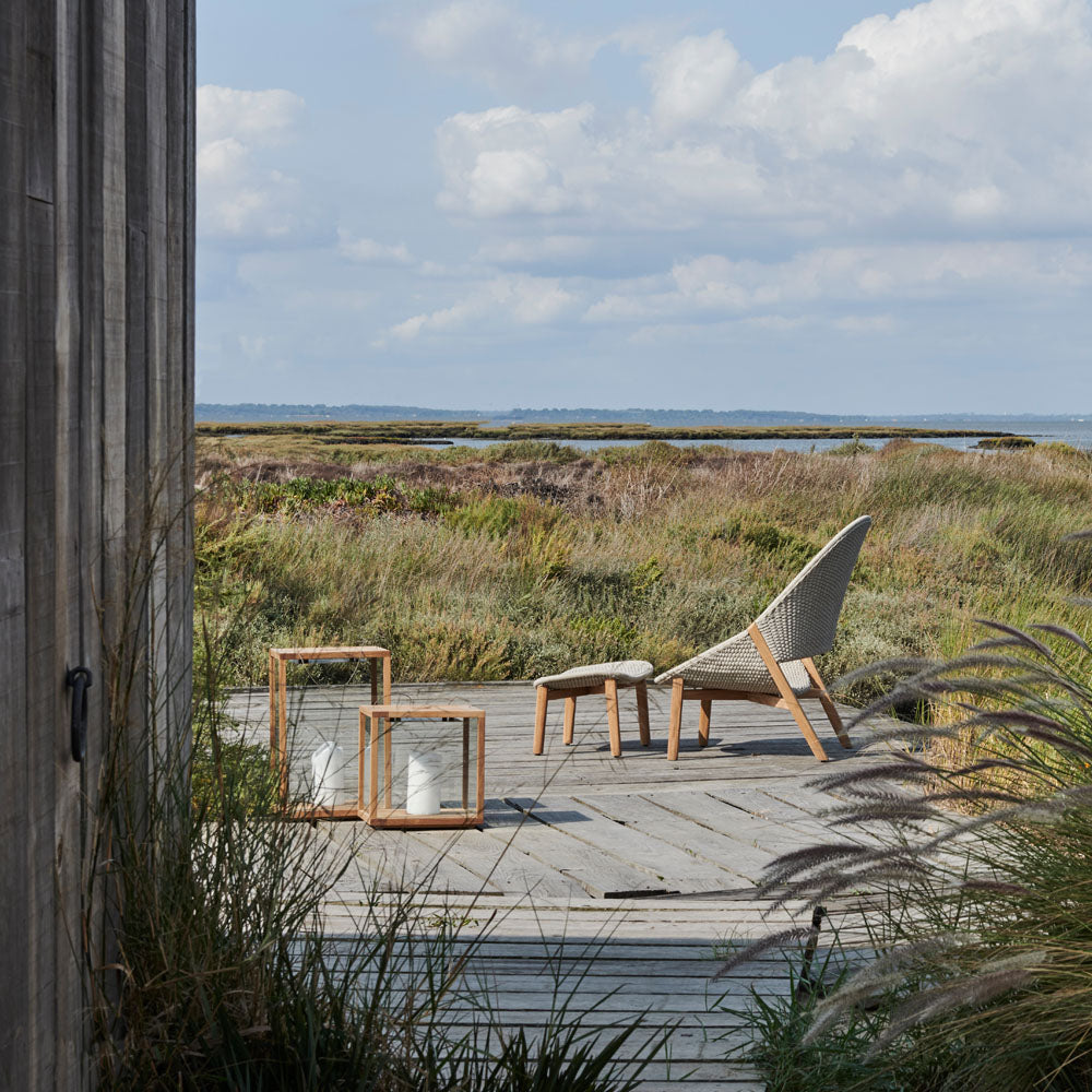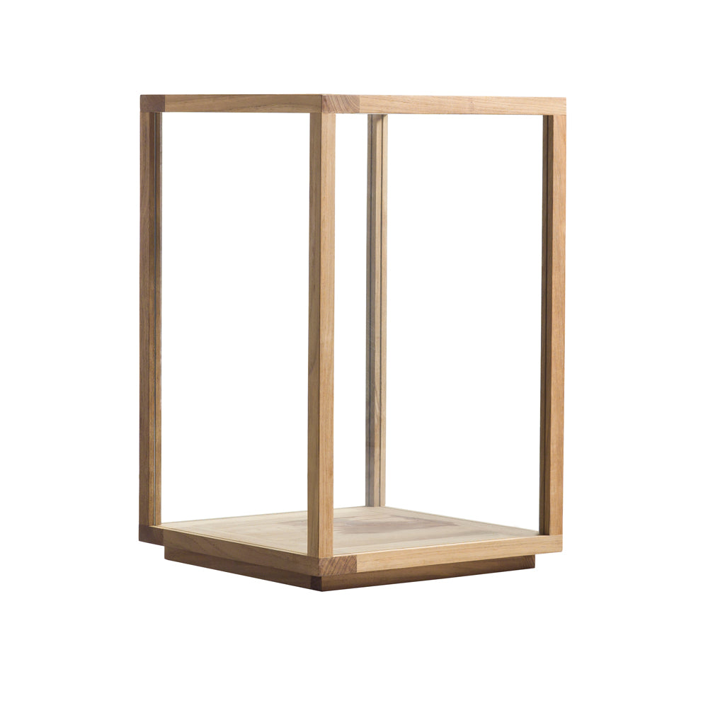 Tribù outdoor lanterns, These teak lanterns with thermally reinforced glass make your summer evenings even more cozy. Their simple design makes them the perfect accessories for any outdoor space. Create variation by combining the two available sizes with the teak base.